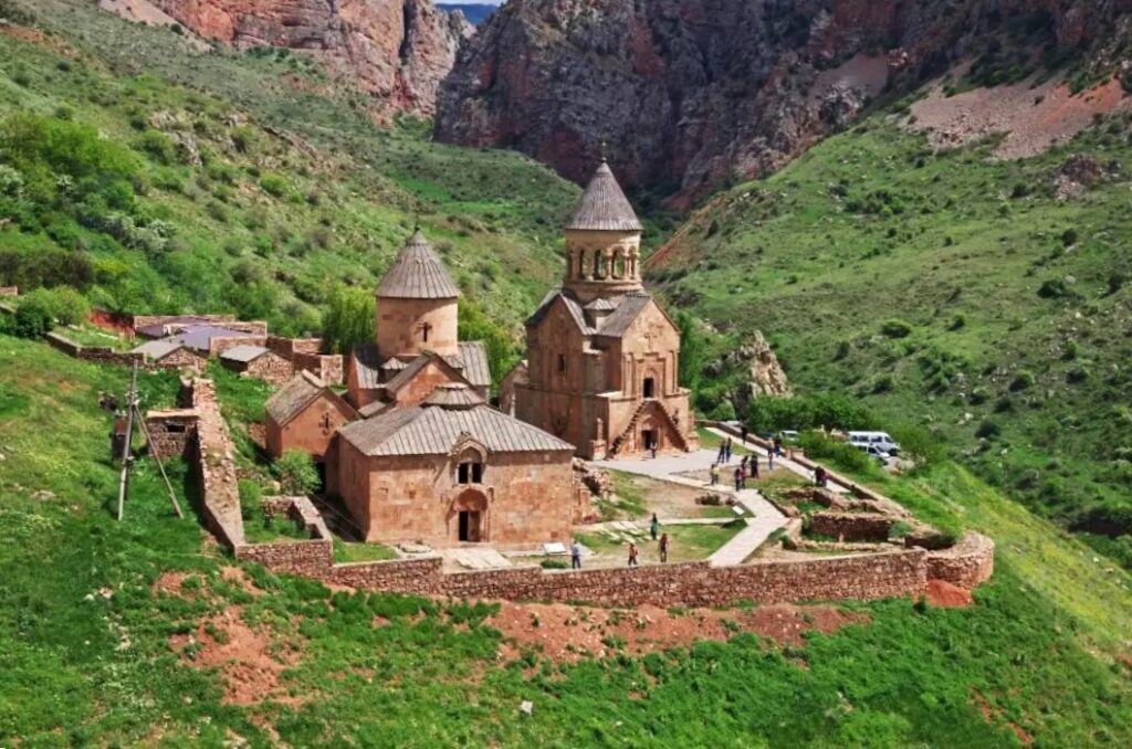 En un paisaje de bellos picos y gargantas salvajes, visitaremos el Monasterio de Noravank, una obra del arquitecto Momik, rodeado de las montañas rocosas de gris y rojo, con la iglesia de dos pisos de Surp Astvatsatsin, ricamente decorada con bajorrelieves. Almuerzo en una bodega local con la degustación de vinos locales.