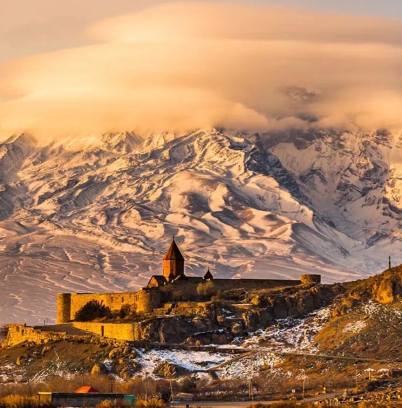 Salida hacia el sur-este, para el monasterio de Khor Virap, dominado por el perfil nevado del magnífico monte Ararat, en una ubicación sugestiva cerca de la frontera con Turquía. El monasterio alberga el pozo-prisión (Khor Virap significa “pozo profundo”) en la que en el siglo IV fue encarcelado durante 13 años, San Gregorio el Iluminador.