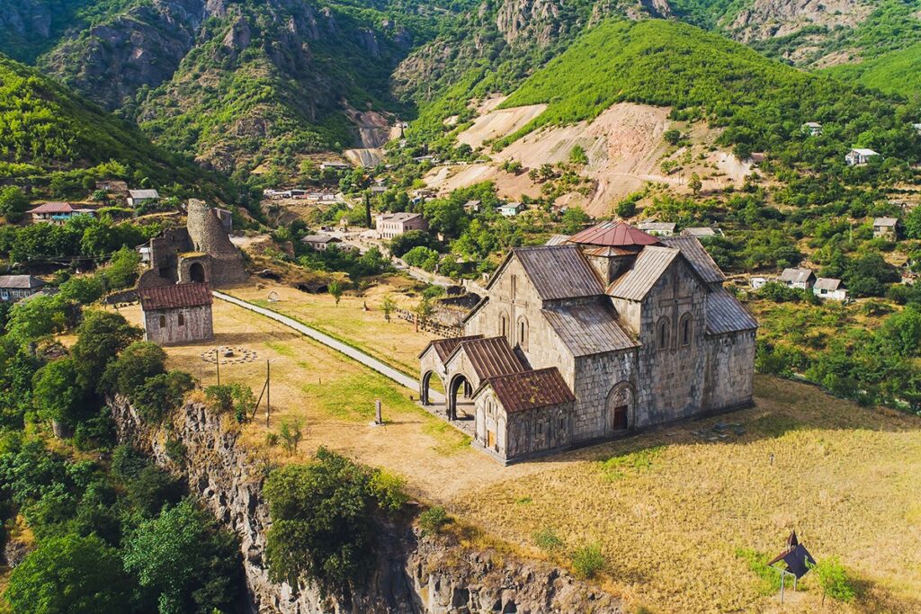 Fundado en el siglo IV en el fondo de una garganta estrecha y destruido por los árabes en el siglo IX, el monasterio fue reconstruido en el siglo XIII. El complejo monástico, lleno de hermosos bajorrelieves, contiene varias interesantes iglesias y tumbas de piedra que representan el pico de la arquitectura medieval armenia. Fue declarado Patrimonio de la Humanidad por la UNESCO.