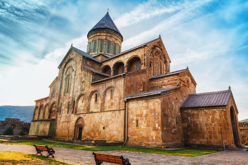 Descenso hacia el centro, donde se realizará un breve paseo y la visita de la Catedral de Svetitskhoveli (siglo XI), “El Pilar que da vida”, erigida según la tradición en el lugar donde fue enterrada la túnica de Jesucristo.
