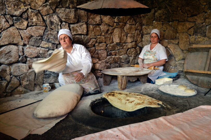 Salida hacia la región de Kotayk hacia el pueblo de Garni, con almuerzo en restaurante local, donde se asistirá en la preparación de lavash, el pan armenio, cocinado en el horno tradicional excavado en el suelo. Está declarado Patrimonio Inmaterial de la Humanidad