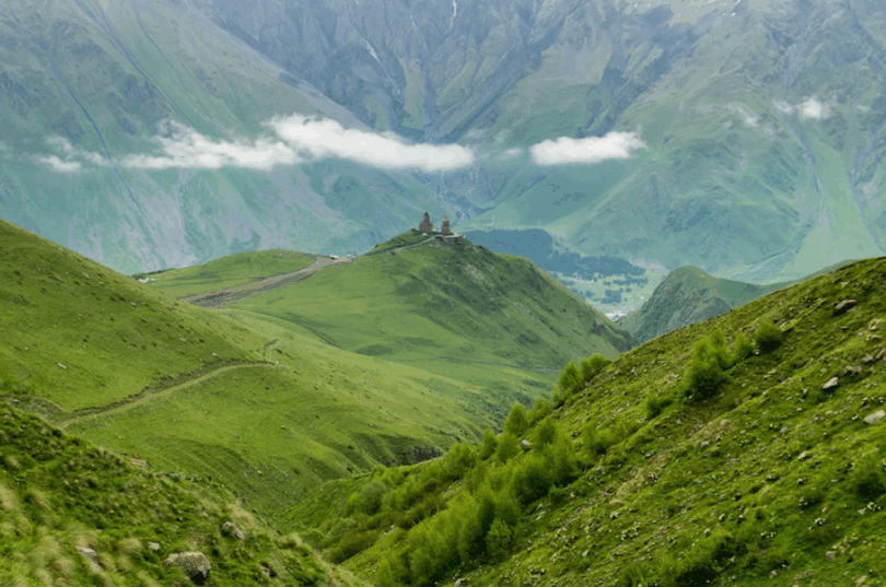 Continuación hacia la localidad de Stepantsminda, un pequeño pueblo situado al pie de las montañas del Gran Cáucaso, cena y y alojamiento en Stepantsminda