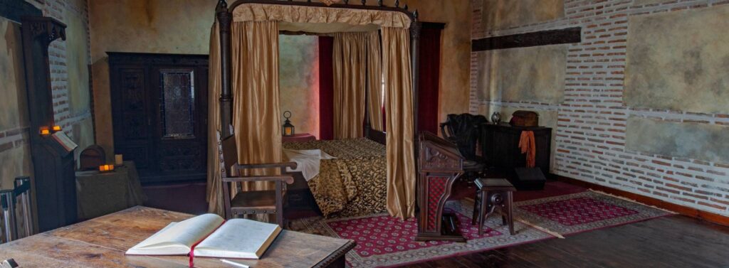 Visitaremos el escenario original, el castillo de la Mota y Palacio Real Testamentario, que alberga en la actualidad el Centro de Interpretación de la Reina Isabel I de Castilla, ya que fue una de sus residencias habituales y un lugar de especial importancia en la vida de la Reina. Entre sus muros dictó su testamento y codicilio y allí falleció el 26 de noviembre de 1504.